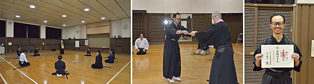 我々の稽古している田宮流居合術は古い居合術(剣術)流派で居合型と剣術組み太刀が技数は少ないですが、伝統として残された技の型を稽古しています。一般に古流と呼ばれています。希望者の会員さんは他に、全国統一の12本の形を学ぶ、「居合道」も稽古出来ます。(昭和期に古流居合の各先生が集まり、型を持ち寄って制定された全国統一の型で、その為、制定居合とも呼ばれています)我々は古流の田宮流を主にしていますが、居合道も稽古している会員さんもいます。秋に居合道の昇段審査の初段を受験したIさんMさんが合格致しました。初段合格おめでとうございます!