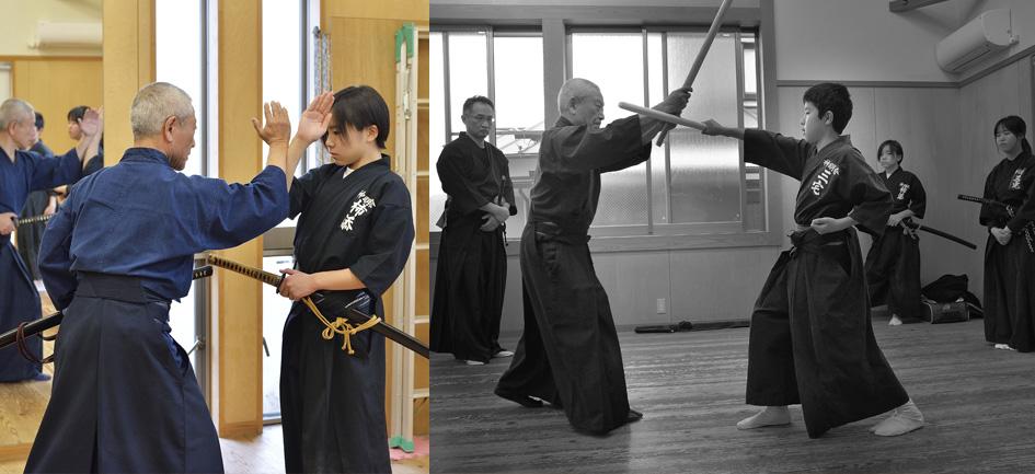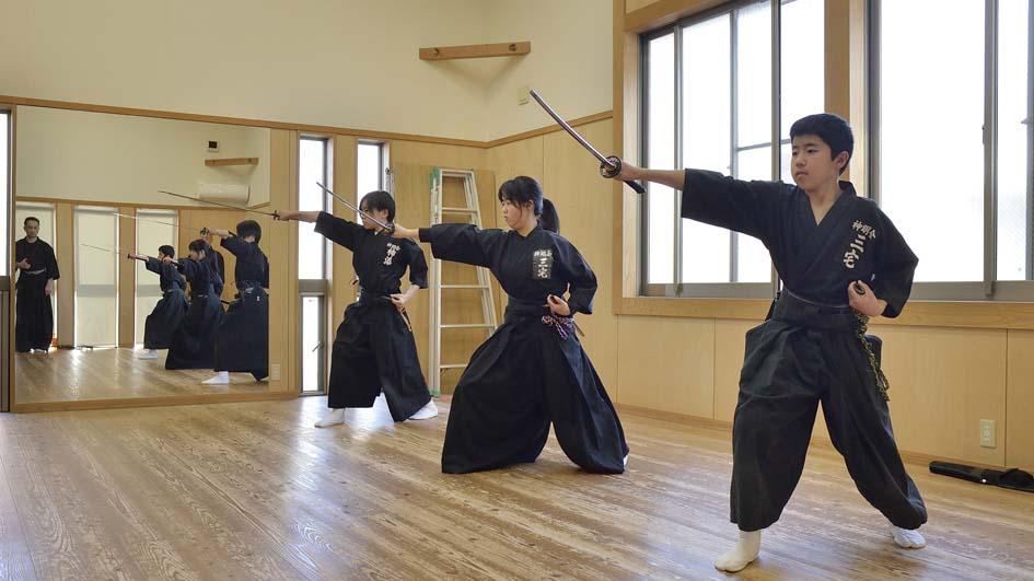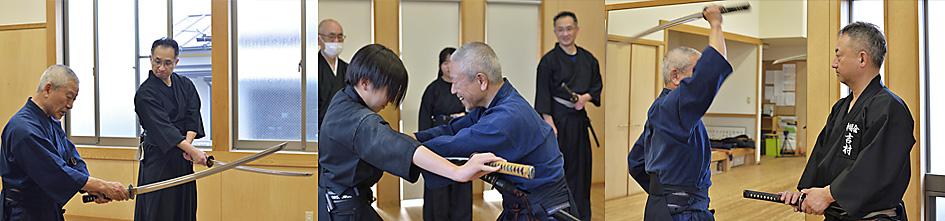 身体の内側を柔軟に使う稽古法や、同じ技の理合でも足を踏み替え四方八方へ出来る様な踏み替え足の運用法、初心者の方へは刀の握り方、手の内などのご指導を丁寧に教えて頂きました。